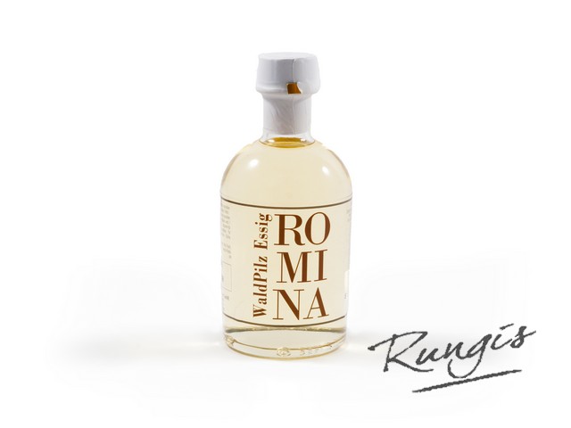 Deze bospaddenstoelen azijn is geproduceerd met eekhoorntjesbrood uit het Italiaanse Piëmonte. De Romina azijnen worden vervaardigd met behulp van de Trebbiano Toscano druif, die van nature rijk is aan suikers. Hierdoor ontstaat een fruitige smaak met een milde afdronk. Romina is het bedrijf van een excentrieke Duitse fijnproever met een neus voor kwaliteit. Crazy Mike is op een zoektocht naar de allerbeste ingrediënten, zoals bergamot uit Calabrië, eekhoorntjesbrood uit Piëmonte, kardemom uit India en meer, om zijn meesterlijke creaties tot leven te brengen. Door het inkoken, distilleren en fermenteren ‘vangen’ we de smaken en worden krachtige groente en fruit oliën en azijnen gecreëerd.