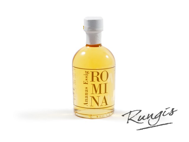 Deze provence ananas azijn is geproduceerd met ananas uit de Franse Provence. De Romina azijnen worden vervaardigd met behulp van de Trebbiano Toscano druif, die van nature rijk is aan suikers. Hierdoor ontstaat een fruitige smaak met een milde afdronk. Romina is het bedrijf van een excentrieke Duitse fijnproever met een neus voor kwaliteit. Crazy Mike is op een zoektocht naar de allerbeste ingrediënten, zoals bergamot uit Calabrië, eekhoorntjesbrood uit Piëmonte, kardemom uit India en meer, om zijn meesterlijke creaties tot leven te brengen. Door het inkoken, distilleren en fermenteren ‘vangen’ we de smaken en worden krachtige groente en fruit oliën en azijnen gecreëerd.